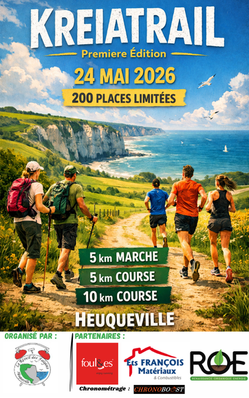 La première édition du Kreiatrail se tiendra le 24 mai 2026 à Heuqueville. Cet événement sportif propose plusieurs formats accessibles à différents profils de participants.